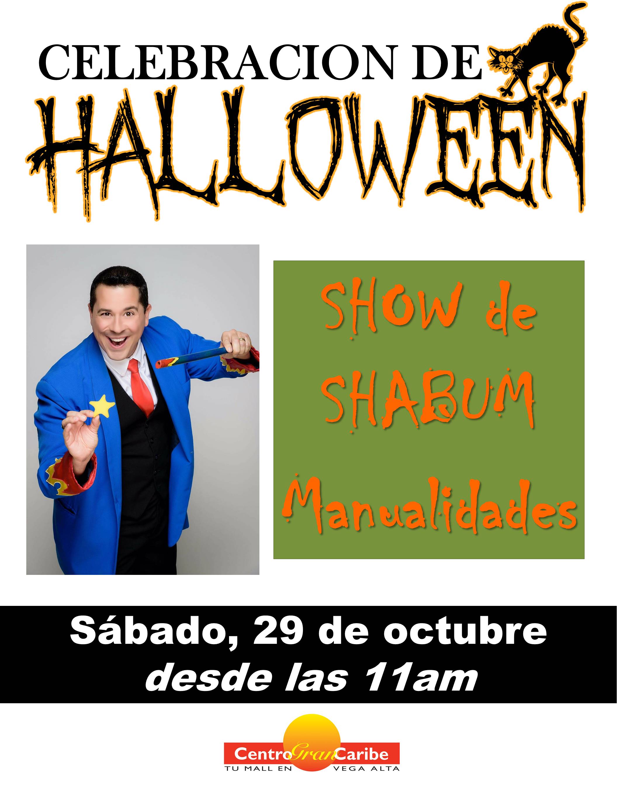Ven disfrazado y celebra Halloween en Centro Gran Caribe hacienda manualidades y disfrutando el show de Shabum